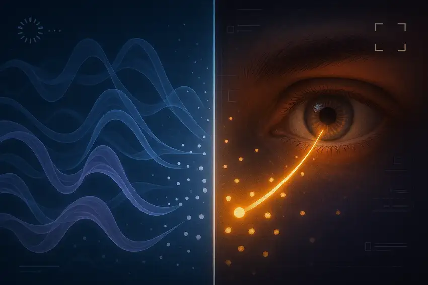 In kwantumexperimenten ‘beslist’ een deeltje pas zijn toestand zodra het wordt gemeten. Dat lijkt op een systeem dat pas rendert wanneer het nodig is — net als in een game die alleen genereert wat je ziet.